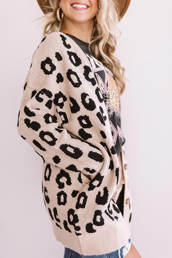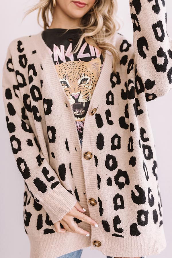 Pinot in Winter Park Leopard Cardigan In Iced Latte