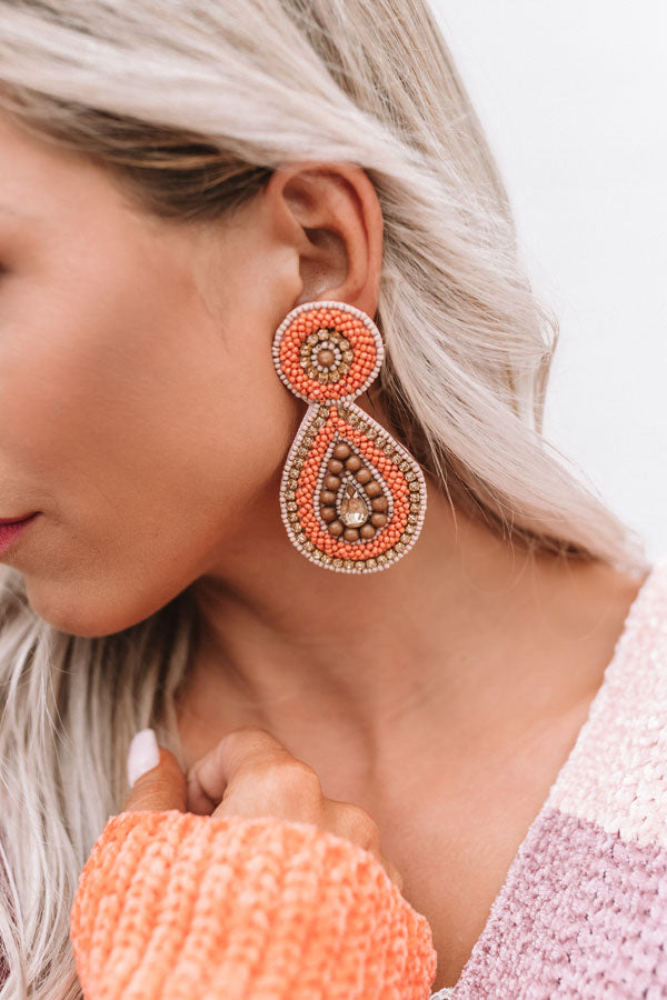 There is not a better accessory to wear to a "pinot party" than these statement earrings with a persimmon beaded circle stud and oversized teardrop!