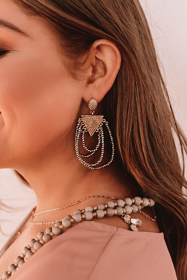 You are sure to look FABULOUS when you accessorize with these adorable statement earrings featuring gold textured circle studs and dangling textured triangles with charcoal colored beaded hoops!