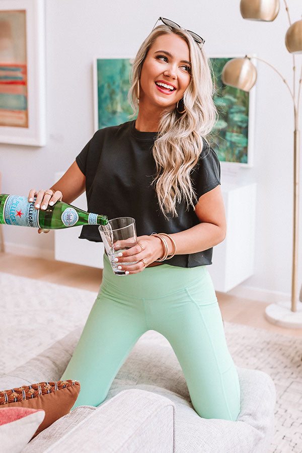 You will surely want to "play for keeps" when it comes to this black top featuring soft lightweight material, a high rounded neckline, short loose sleeves, and a relaxed silhouette that falls into a straight cropped hemline! You can style this cutie a variety of ways, like with some mint colored legging and sunnies, but you can also wear it layered over a lace bralette with some distressed white shorts, our "Steve Madden Phillip Leopard Sneaker," and our "New Views Faux Leather Tote!" Measurements