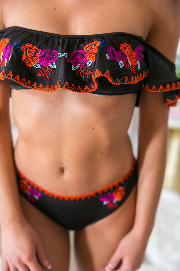 - Complete your look with the "Playa Del Pretty Embroidered Bikini Bottoms" in Black!