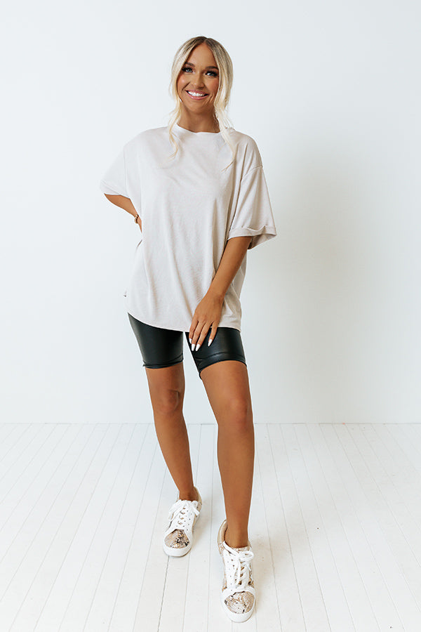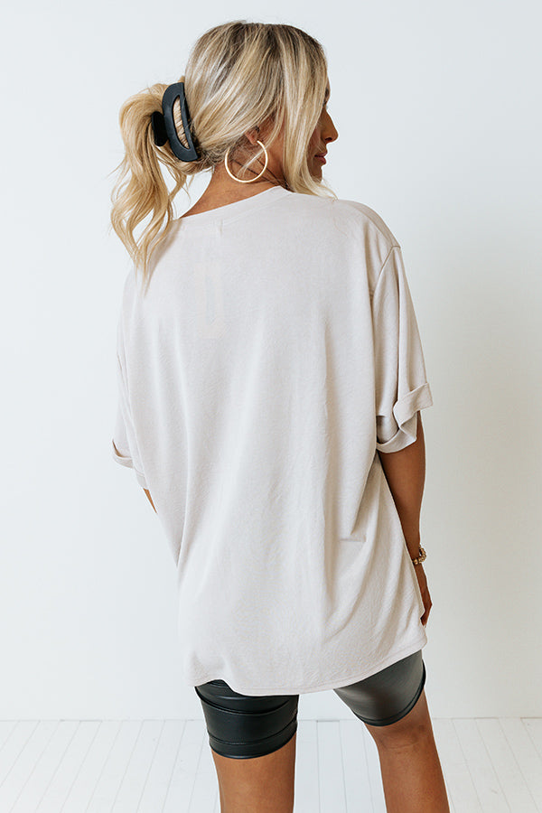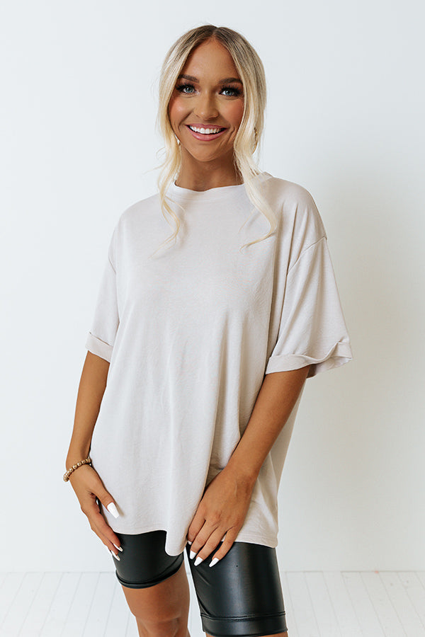 Upgrade your everyday casual look with our simple stone colored 'Plaza Dreams Shift Top' featuring soft and lightweight cotton-blend material, a rounded neckline, short loose sleeves with rolled cuffs, and a slouched silhouette that ends in a straight hemline!