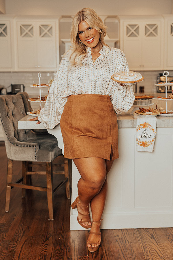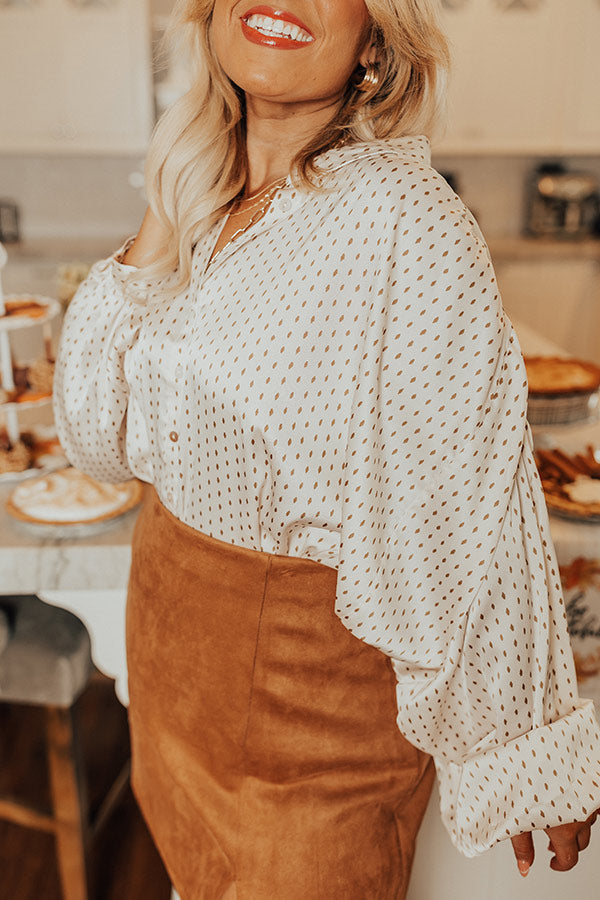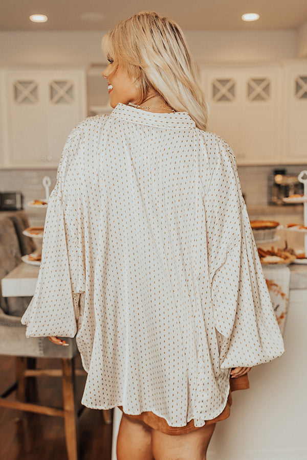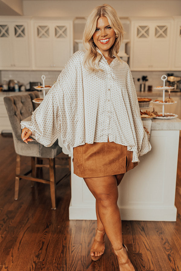 Stay trendy in our 'Pleasant Surprise' top featuring lightweight satin material, a button down front with a collared neckline, long dolman sleeves with buttoned closure cuffs, and a relaxed silhouette that falls into a rounded hemline!