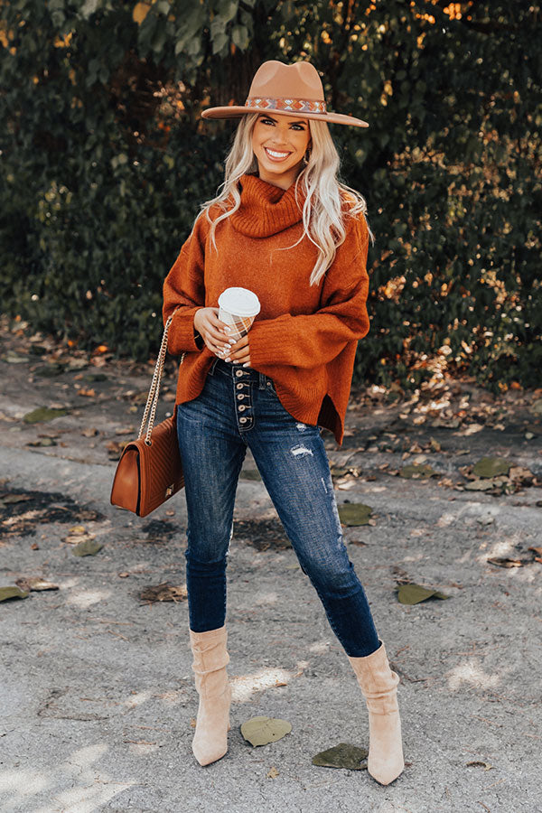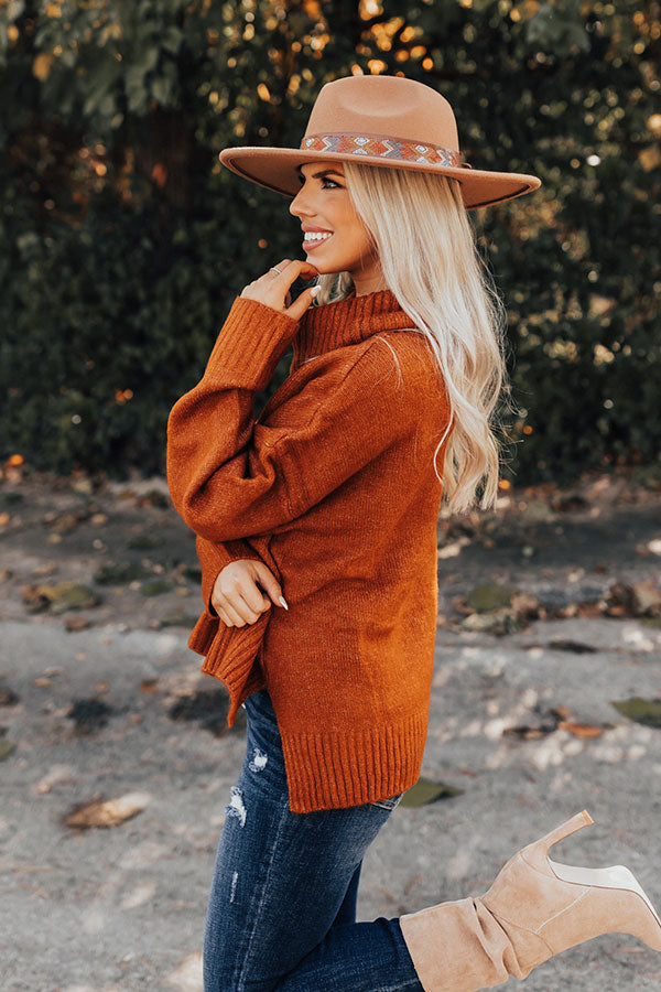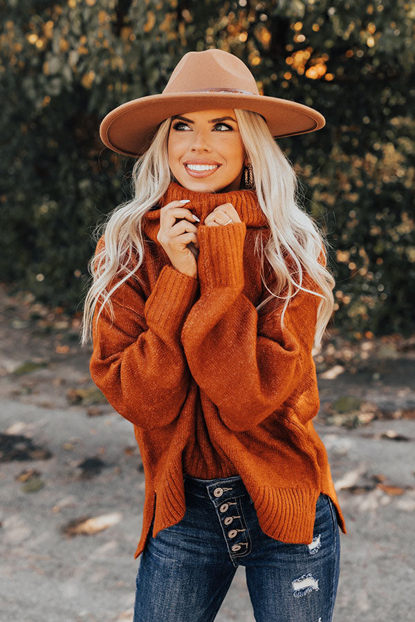 This simple but stylish 'Plush Comfort Sweater In Rust' is the season must-have! Features a lightweight warm knit material, a cowl neckline, long loose sleeves with ribbed cuffs, and a relaxed and flattering silhouette that falls into a subtle high-low hemline with accent slits.