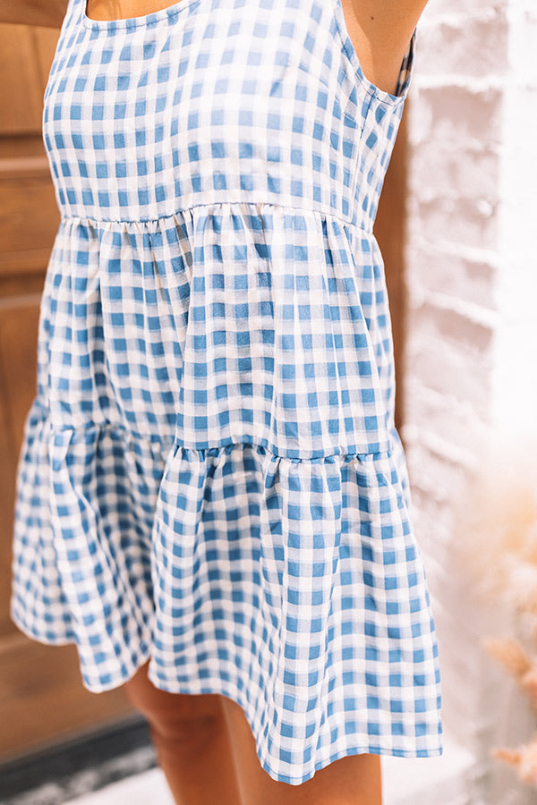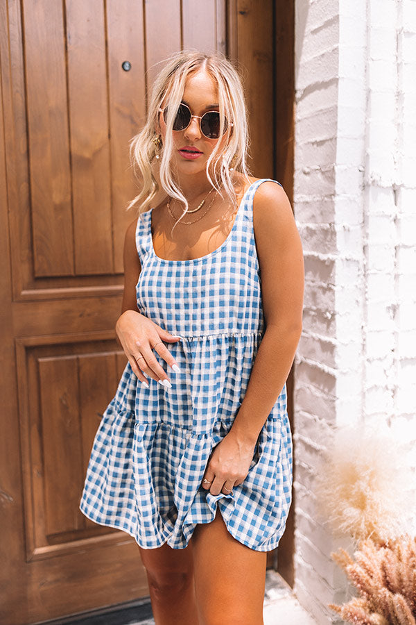 Enjoy those long summer days in style with our charming 'Poems And Prosecco' romper featuring lightweight flowy material patterned with a cute blue gingham print, a scooped neckline and upper back with wide sleeveless shoulder straps, and a relaxed tiered silhouette that falls into straight upper-thigh length shorts hemlines! Measurements