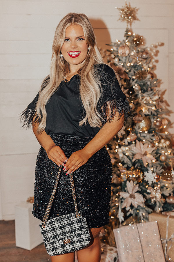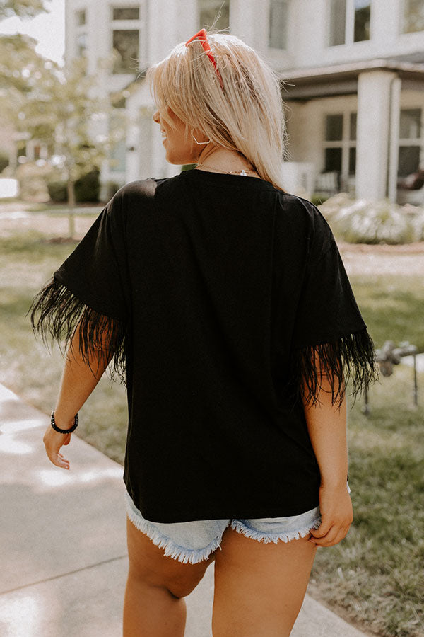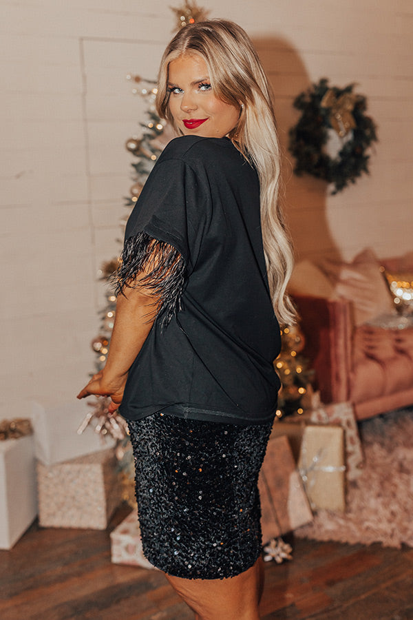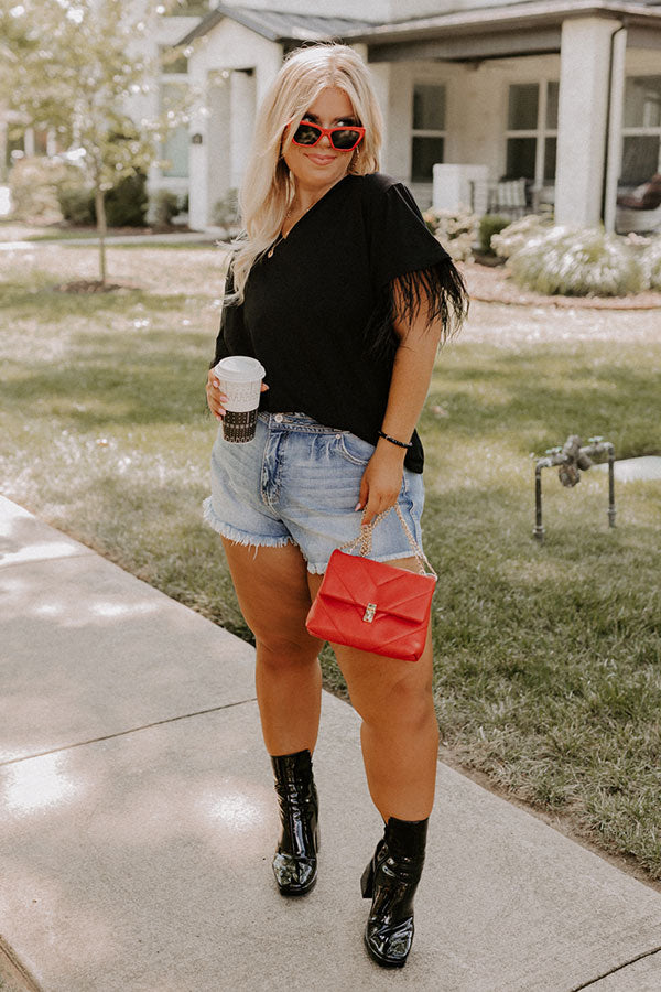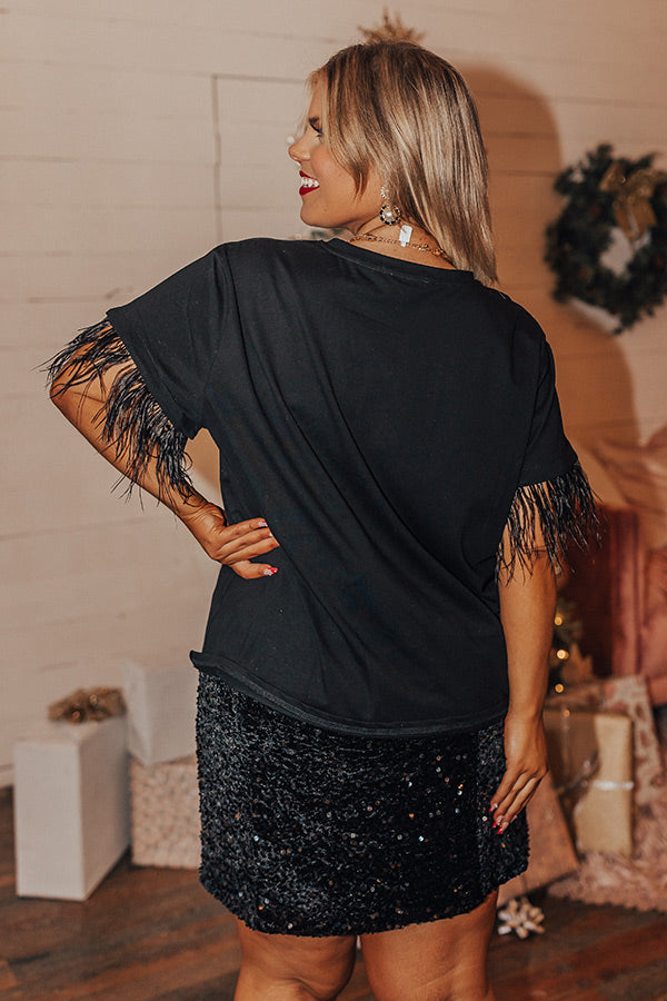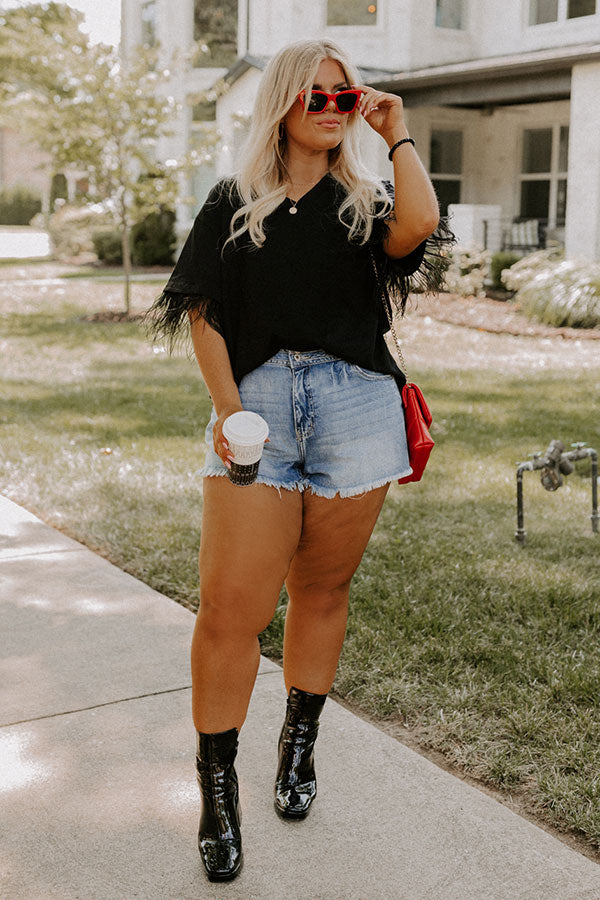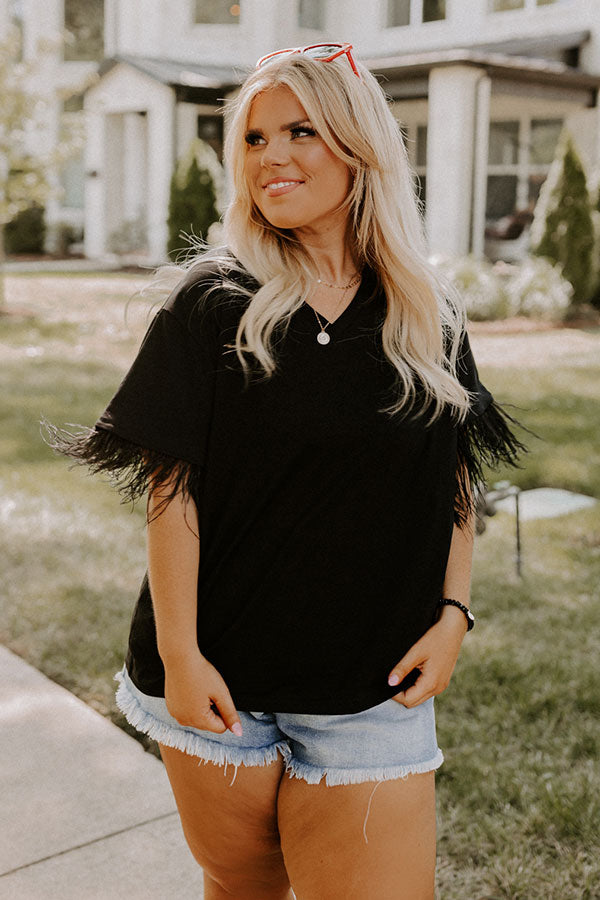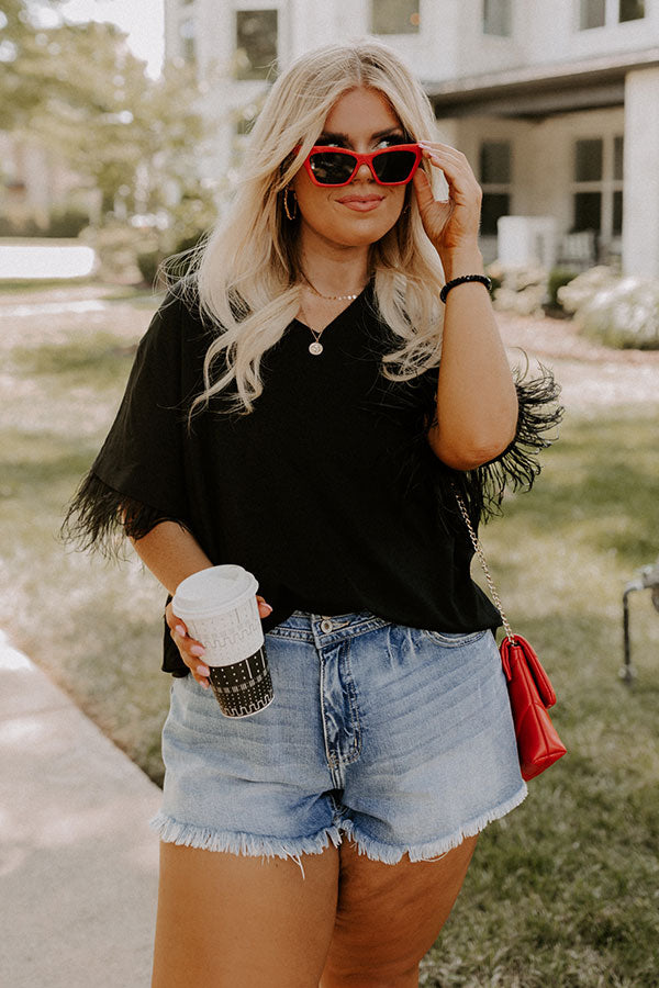 Flirty and fun, our trendy black plus size 'Point The Way' shift top features soft lightweight material, a rounded neckline, loose short sleeves with feather trim detailing, and a slouched silhouette that ends in a straight hemline!