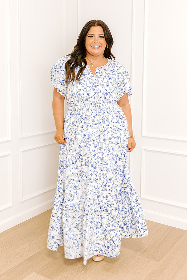 Polished Perfection Floral Maxi Dress in Royal Blue Curves