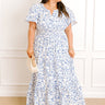 - This adorable floral maxi is bursting with charm and effortless style. With its flowing silhouette and sweet print, it's the kind of piece you'll reach for time and time again, capturing those carefree, picture-perfect days in style. - Fully lined 100% cotton material with a blue hued floral print - A v-cut neckline with ruffled detailing - Short loose sleeves - A smocked waistline - Hidden side pockets - A flowy yet flattering silhouette that ends in a maxi length hemline