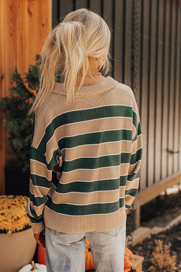 - Unlined knit material with a ivory, oatmeal, and green hued striped pattern