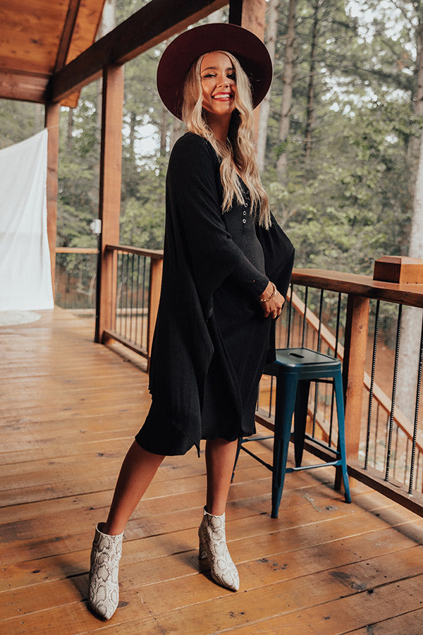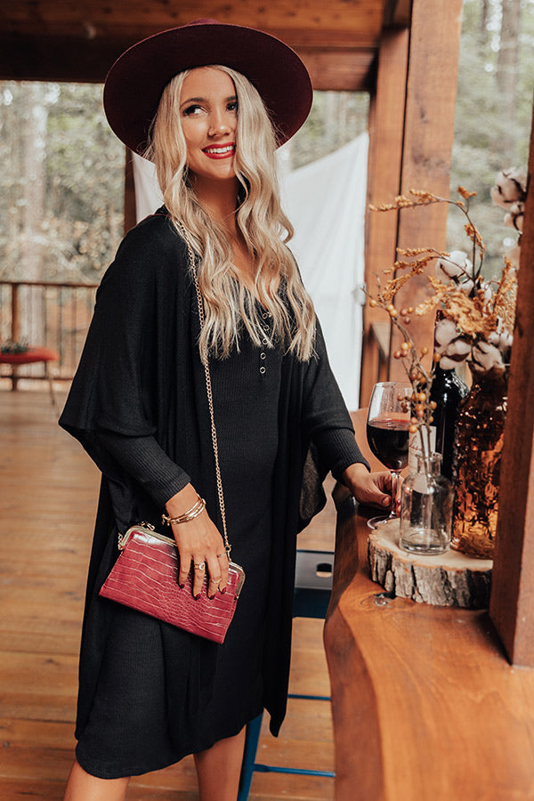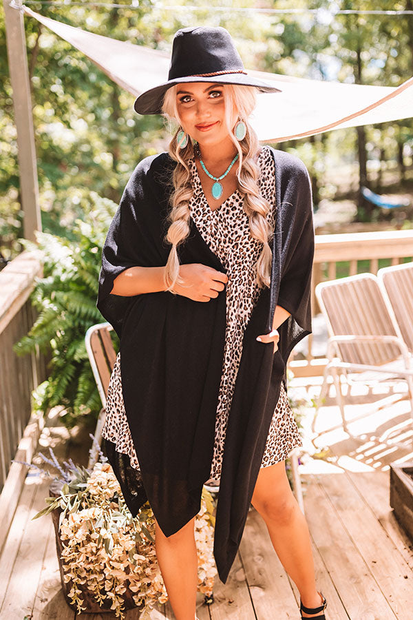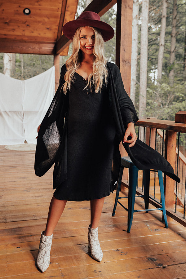 Layer up for those upcoming chilly days in style with our adorable black "Ponderosa Pines Cardigan" featuring ultra lightweight tight knit material, short loose bat wing sleeves, and an ultra relaxed open front silhouette that falls into a rounded mid-thigh length hemline! Measurements