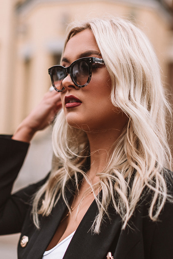 There is no better pair of glasses to wear for a "pool party in Panama" than these adorable stone colored sunnies featuring thick rounded tortoiseshell print frames and dark ombre tinted lenses!
