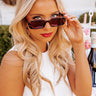 An essential accessory, our cute 'Pool Time Sunnies,' features tortoiseshell print rectangular frames with dark tinted lenses!
