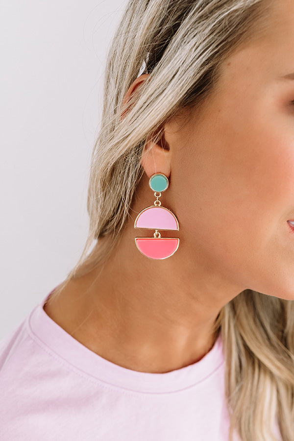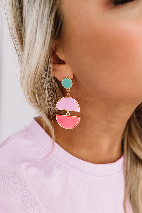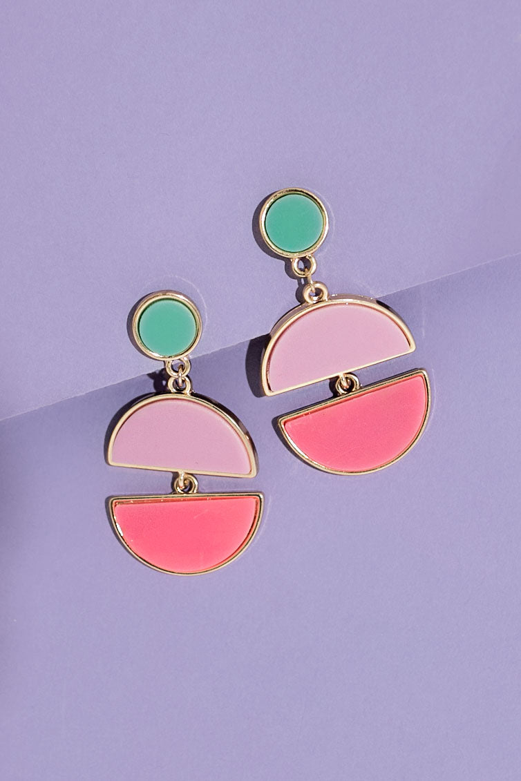 You're OOTD will surely be "popping like it's haute" when you accessorize with these adorable statement earrings featuring rounded turquoise studs and two dangling pink hued half circles!