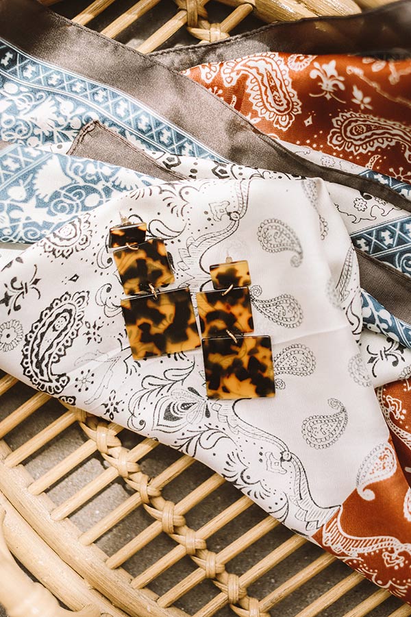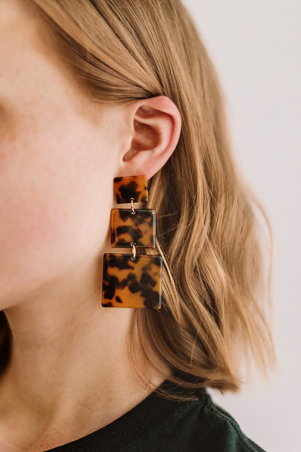 "Pop the confetti!" We have found the perfect statement earrings adorned with three ascending camel tortoiseshell squares!