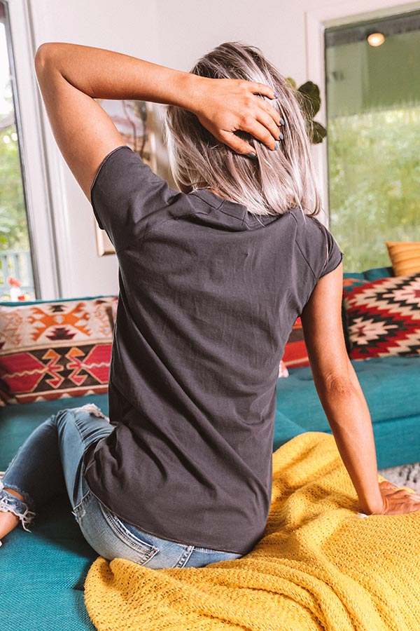 Keep it casual but cute in this wardrobe essential! Our basic black "Poppy Punch Tee" features soft lightweight material, a high rounded neckline, short loose sleeves, raw cut trim detailing, and a figure flattering silhouette that falls into a straight hemline! Measurements