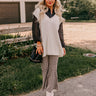 - A relaxed silhouette that ends in a straight hemline with accent side slits