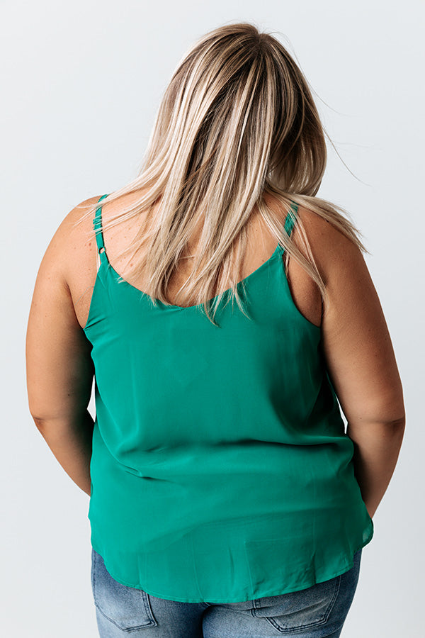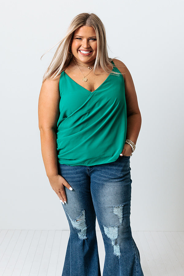 Plus Size - You are sure to look so posh in this luxe green top featuring lightweight material, a wrap bodice with a five side button closure, a wide v-cut neckline with adjustable spaghetti straps, and a flattering silhouette that falls into a rounded hemline! Measurements