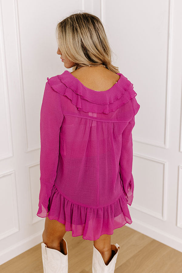 - A relaxed silhouette that ends in a ruffle hemline