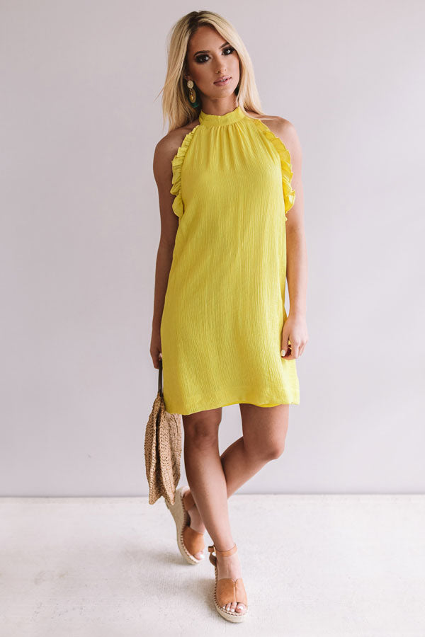 They will hate to see you go, but they will love watching you leave in the "Positively Perfect Halter Shift Dress!" This chic shift dress has a tying halter neckline, relaxed shift silhouette & a gorgeous open back with ruffled trim. Complete your look with a statement earring & a sassy pair of heels for a femme & flirty look that is "positively perfect!"