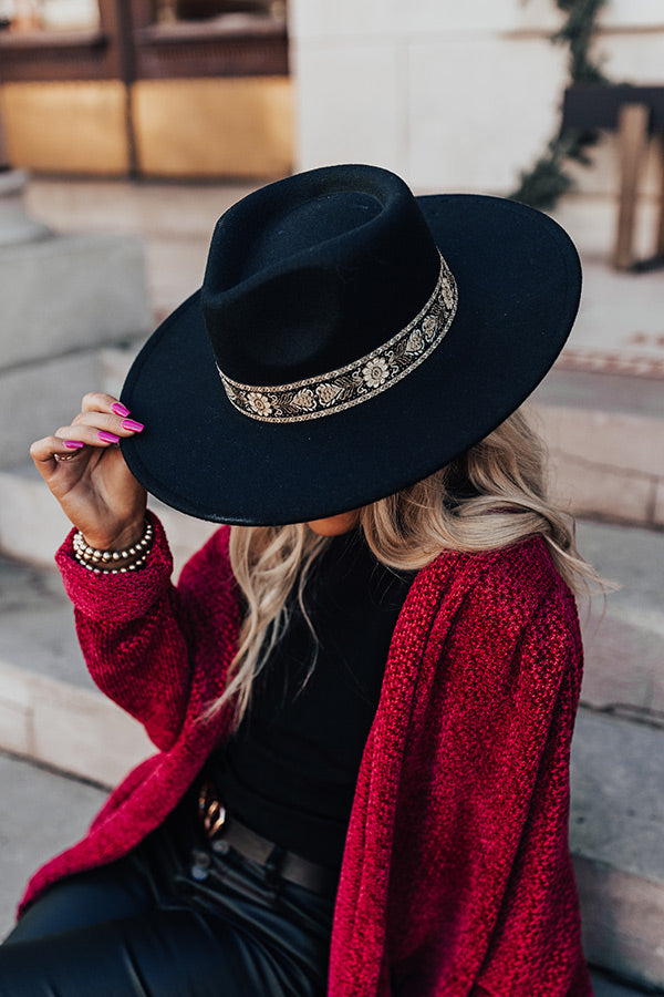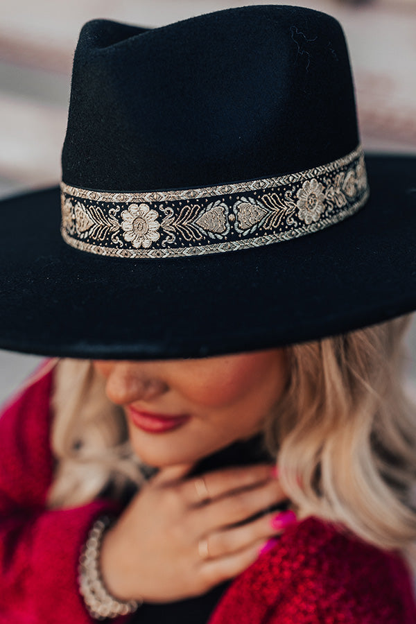 Strike a powerful pose when you top off your look with this beautiful black fedora featuring lightweight felt material, a 4-inch brim, and a gorgeous embroidered accent strap!
