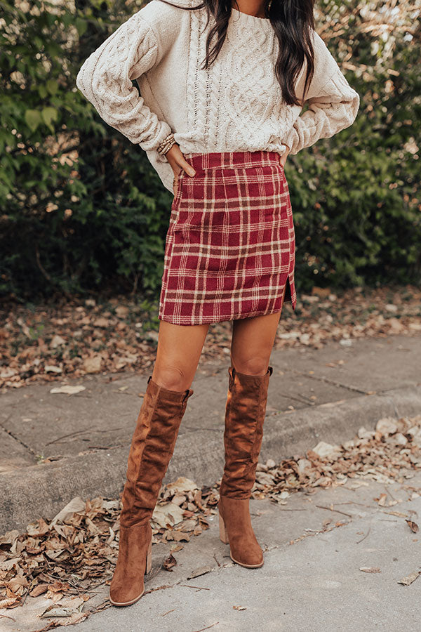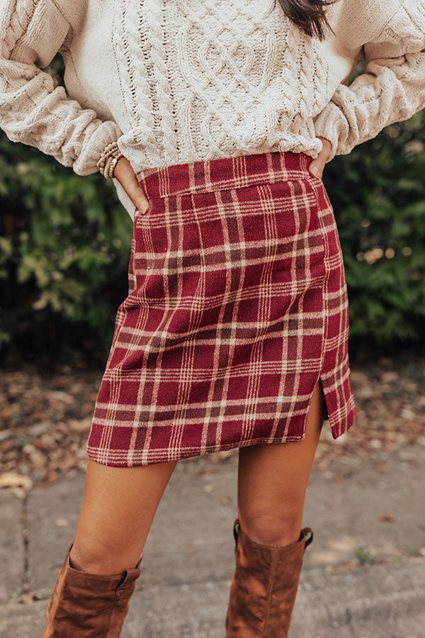 Prep School Plaid Skirt In Wine