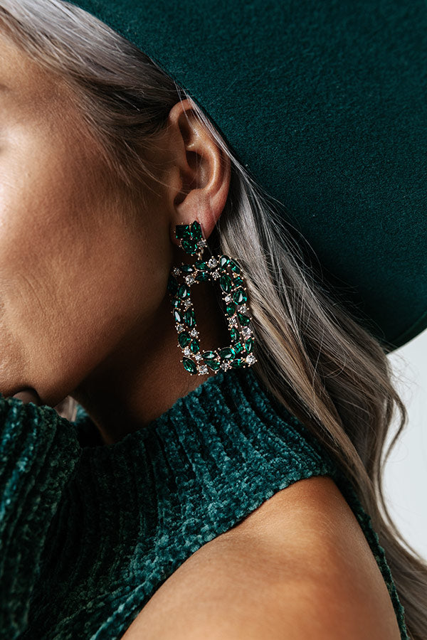 You will be prepared to party when you accessorize with these gorgeous statement earrings featuring emerald studs with dangling emerald and rhinestone rectangular hoops!