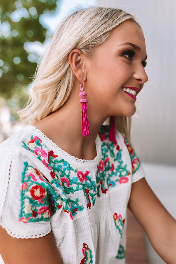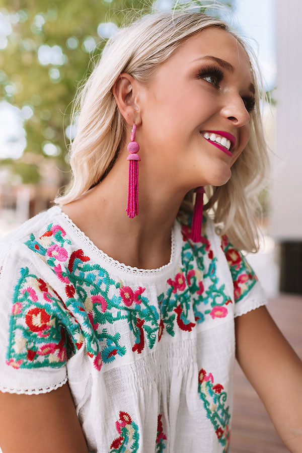 Prettier In Paradise Beaded Earrings In Fuchsia