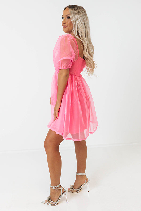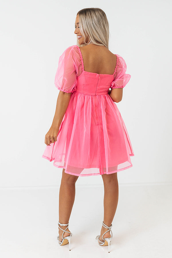 You will undoubtedly be the prettiest girl in the room when you arrive in this adorable bubblegum pink dress featuring lightweight sheer layered material, a square neckline and upper back, short puff sleeves, a zip closure back, and a flattering babydoll silhouette that falls into a straight mid-thigh length hemline!