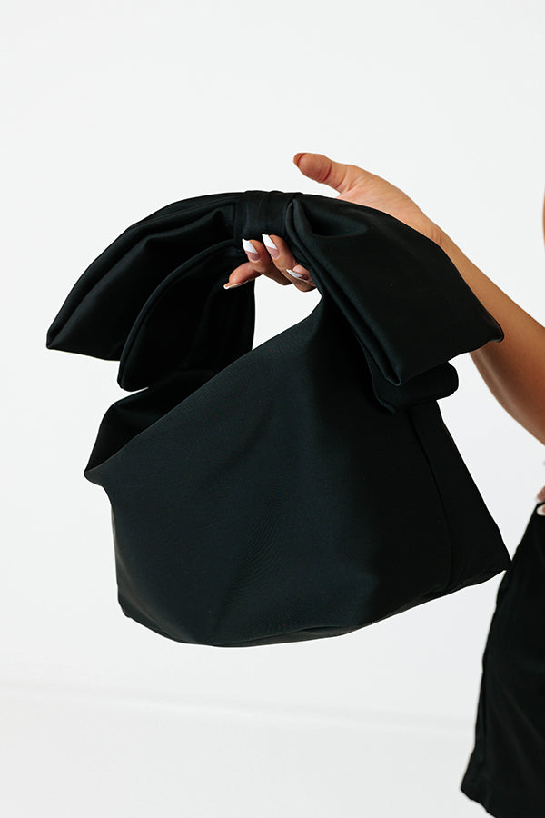 You are sure to be the prettiest girl in the room when you complete your look with this black purse featuring sleek material, a single handle with a large bow accent, and a slouched fully lined interior with a zip closure and an additional zip closure pocket inside!