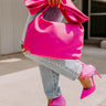 You are sure to be the prettiest girl in the room when you complete your look with this hot pink purse featuring sleek material, a single handle with a large bow accent, and a slouched fully lined interior with a zip closure and an additional zip closure pocket inside!