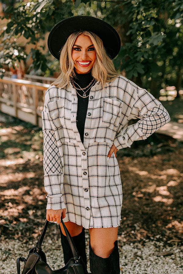 - Long sleeves with geometric accent pattern, cuffs, and button closure