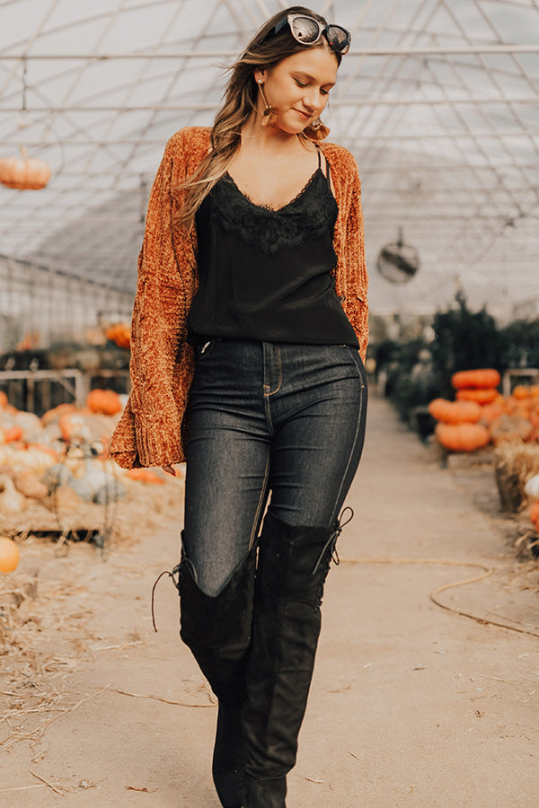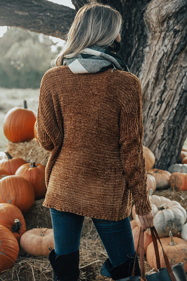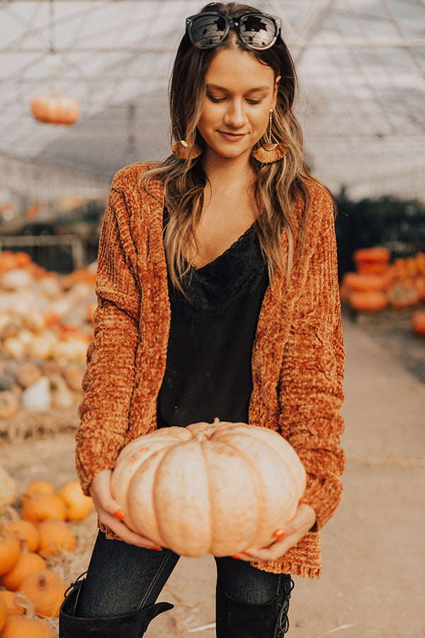 Nothing brings comfort to a gloomy fall day quite like a soft and "pretty cozy" cardigan! This velvety copper cardi features a ribbed chenille texture, long loose sleeves with fitted cuffs, a straight hemline, and a relaxed open front silhouette with a tortoise button up closure! Layer this warm piece over any of your favorite basics to add a little warmth and style to any OOTD!