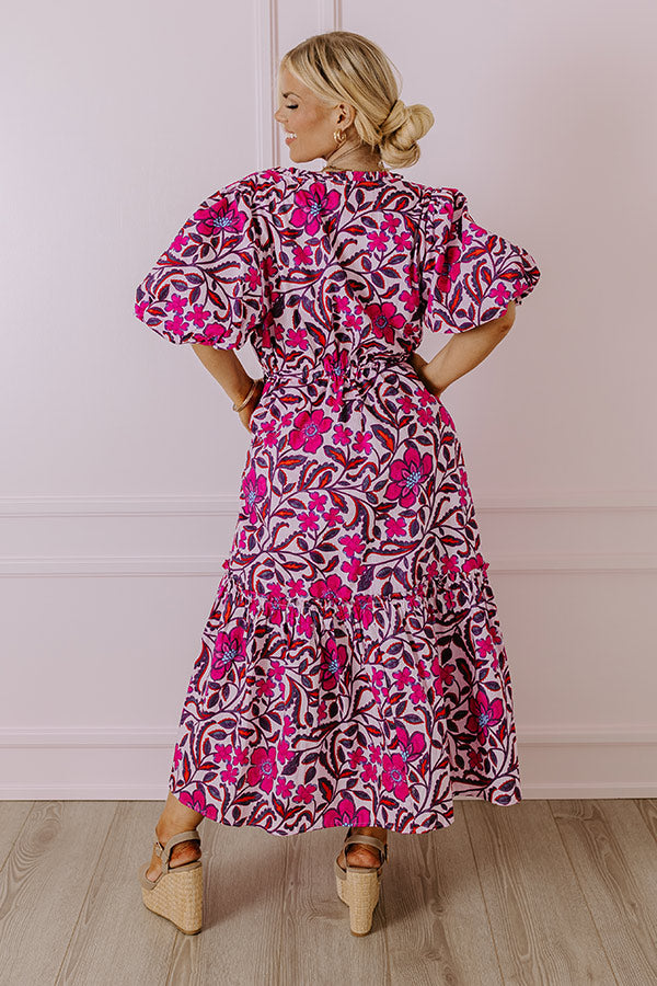 Pretty In Blooms Floral Midi Dress in Pink Curves