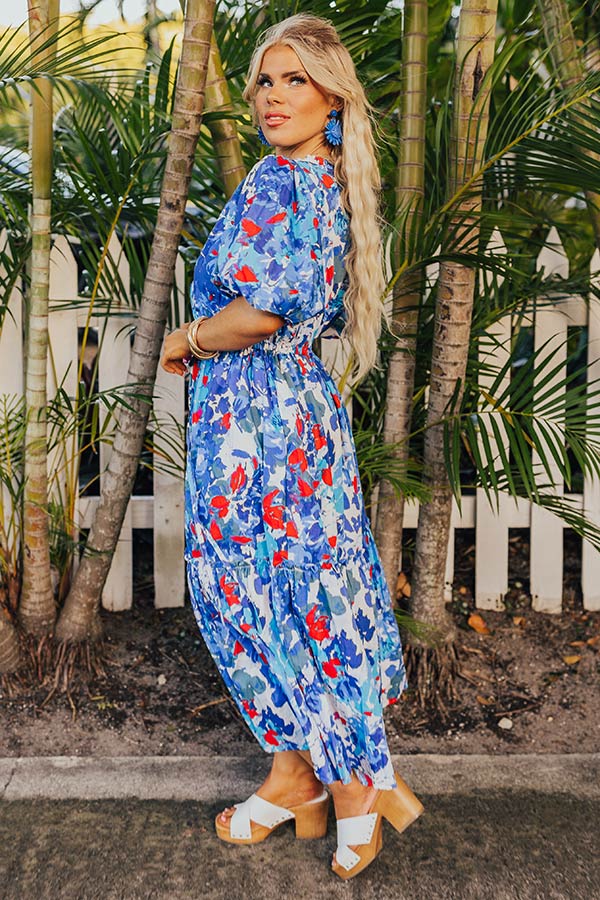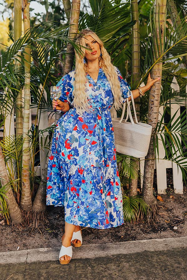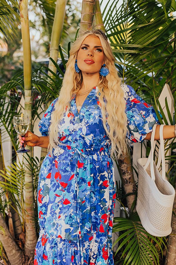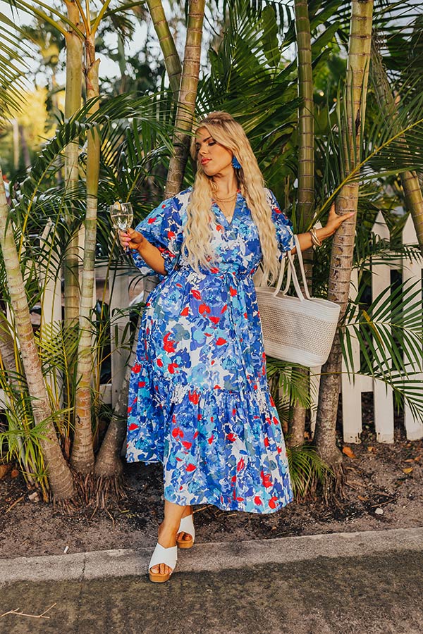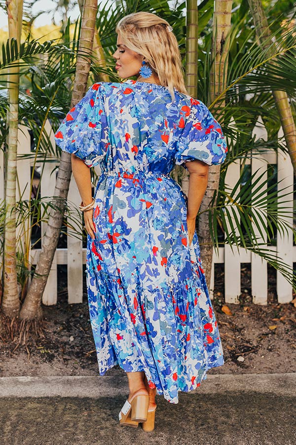 Pretty In Blooms Floral Midi Dress in Royal Blue Curves