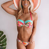Tropic-like-it's haute in this paradise ready bikini! This floral printed bandeau-style bikini top features molded underwire cups that offer you great support & the perfect push-up, & a strappy back that ties.