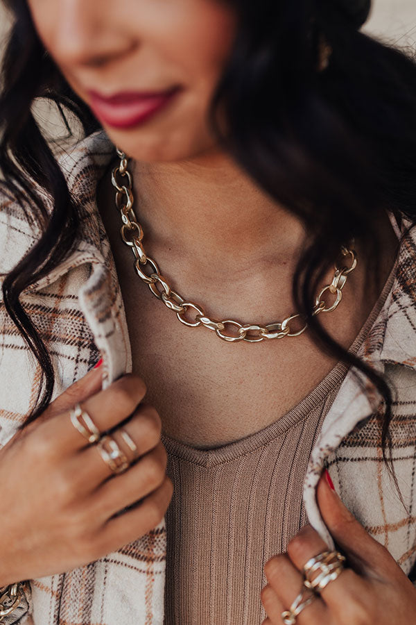 Add a pretty touch to your look with this simple but stunning necklace featuring large gold chain links!