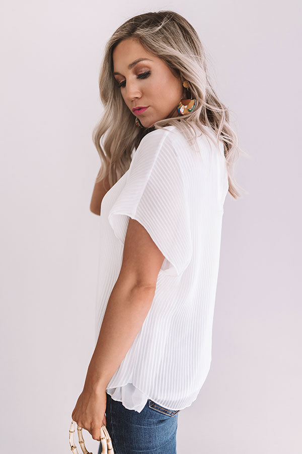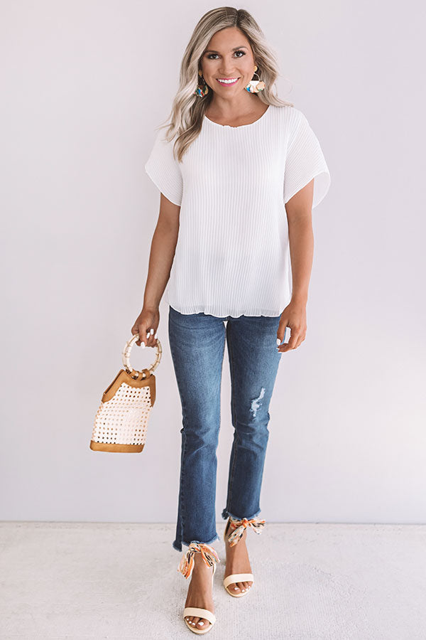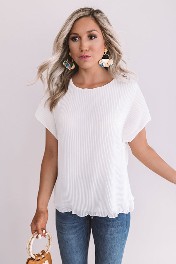 This top will have you saying yes to summer adventures with its pleated fabric and loose fit! It has one button in the back and a slight rippled look along the bottom hemline. Plus, there is no need to wear layers with this top as it has a sewn in liner! Measurements