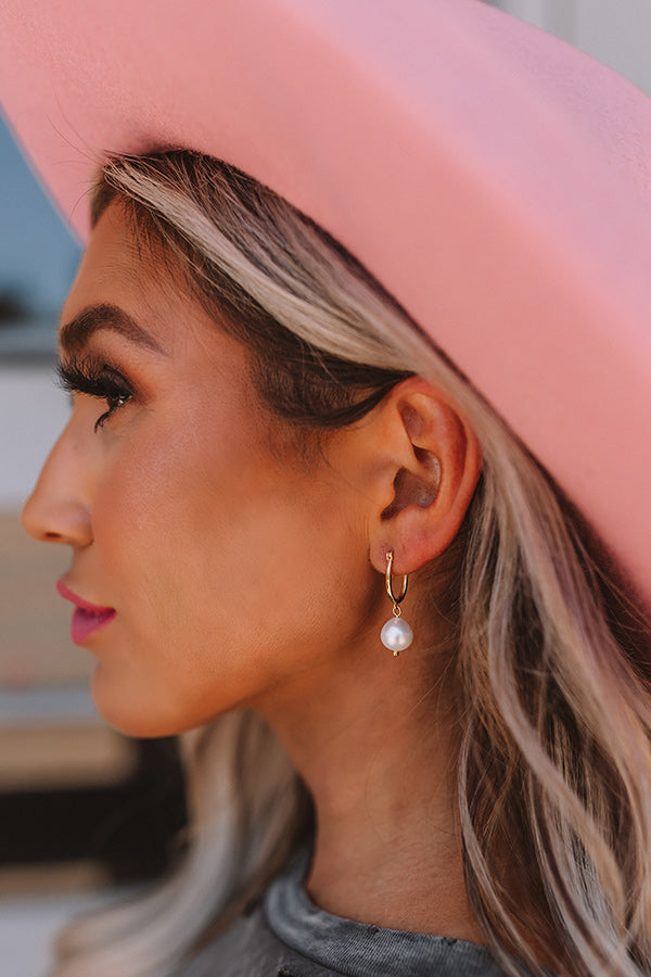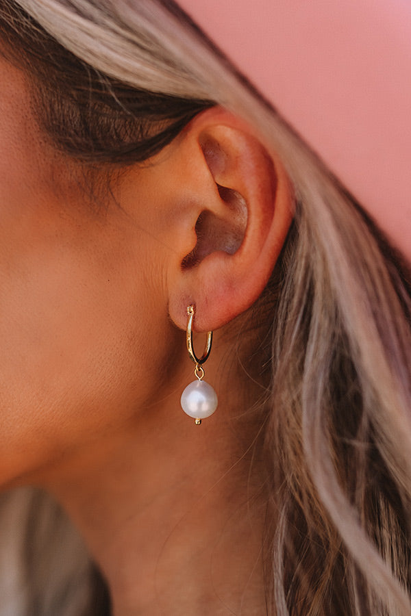 Add a pretty touch to your look with these darling earrings featuring small gold hoops with dangling pearl accents!