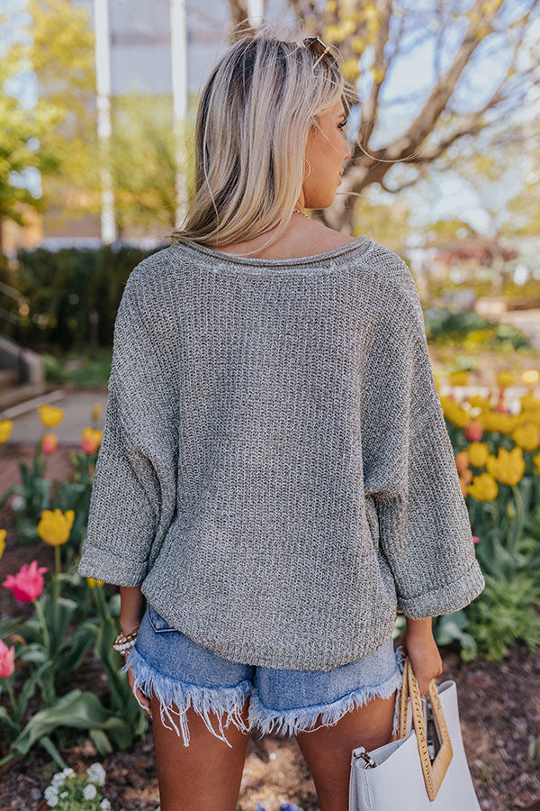 You are sure to go pretty places when you wear this casual grey/pear hued sweater featuring soft lightweight knit material, a v-cut neckline, loose 3/4-length sleeves with rolled cuffs, and a slouched silhouette that falls into a straight hemline! Measurements
