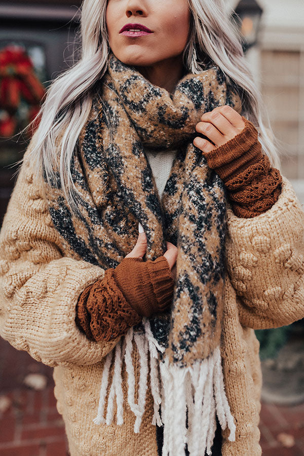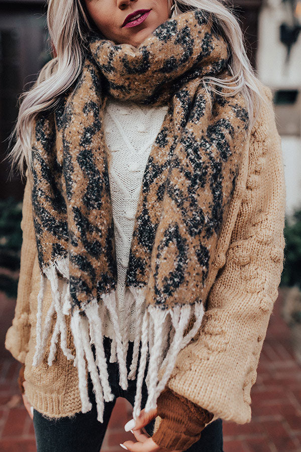 Show up looking pretty to all your plans by accessorizing with this adorable scarf featuring soft lightweight tight knit material patterned with a bold black and brown leopard print and white long fringed edge detailing!