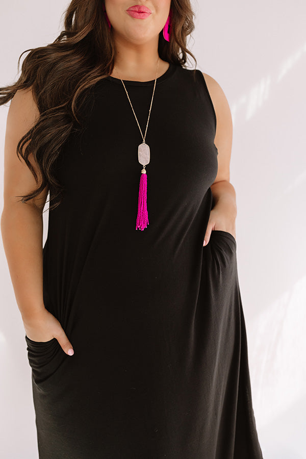 Plus Size - Keep it casual this summer in our adorable black "Pretty Prophecy Maxi" featuring soft lightweight material, a scooped neckline, wide 2-inch shoulder straps, low accent pockets, and an ultra relaxed silhouette that falls into a rounded floor length hemline! You can style this basic piece a variety of ways, like with some turquoise statement jewelry and a neutral wedge or tote, but you can also wear it layered under a denim jacket with some patterned accessories like "The Hannah Leopard Sandal" and "The Celia Hat in Cream!" Measurements
