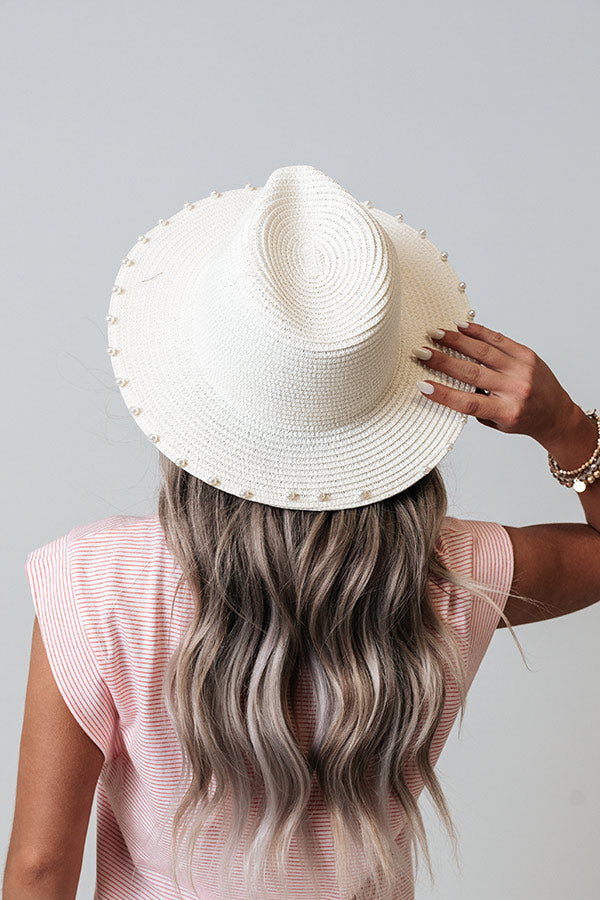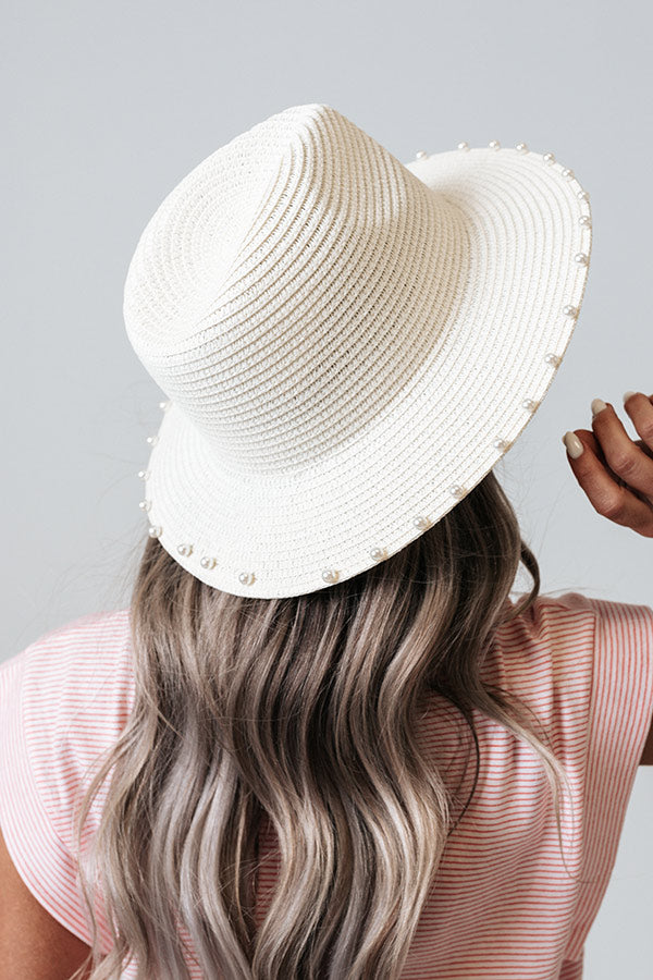 Add a pretty finish to any look with this luxe ivory hued hat featuring lightweight raffia material and a 2.5-inch brim with pearl trim embellishing!