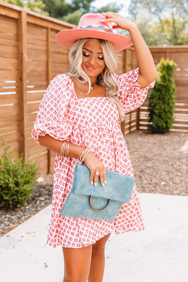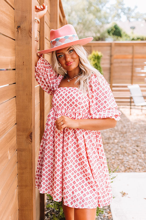 You will look so posh in this flirty dress featuring lightweight material patterned with a pink diamond print, a square neckline and upper back with puff half sleeves, and a flattering figure hugging bodice that falls into a flared skirt silhouette that ends in a straight mid-thigh length hemline! Measurements