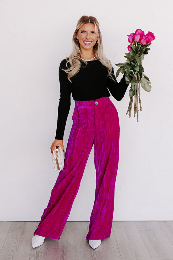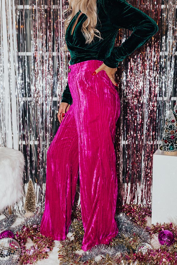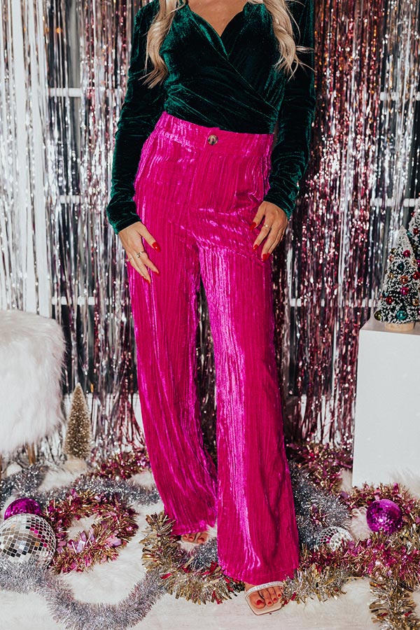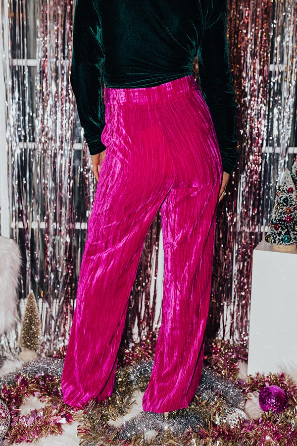 Private Jet Perfection High Waist Velvet Pants In Fuchsia