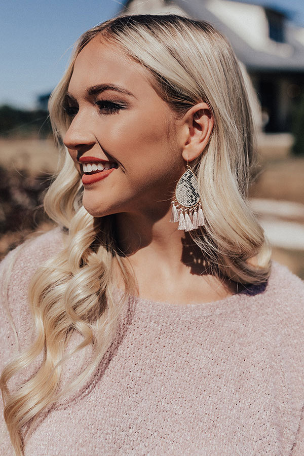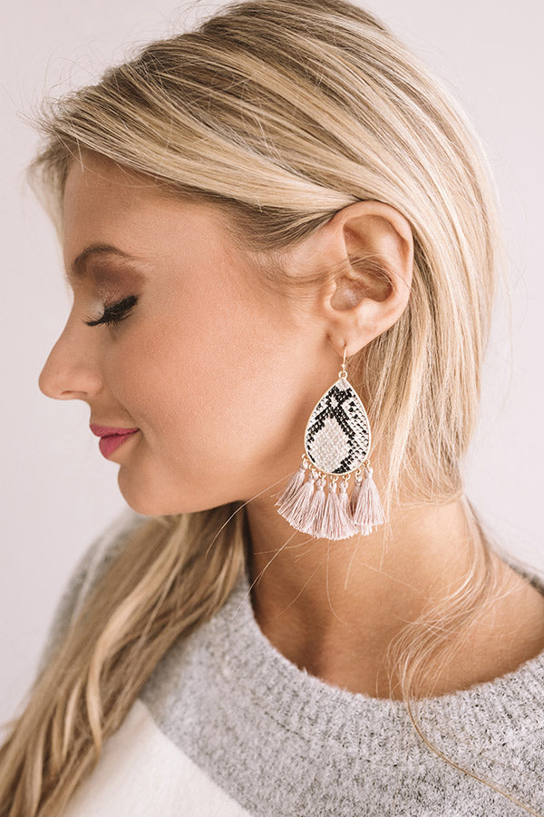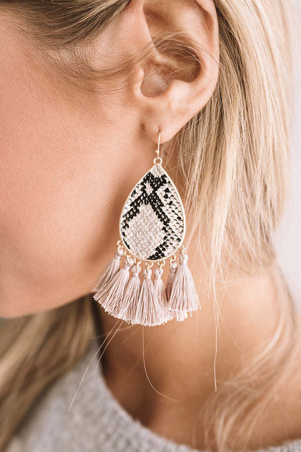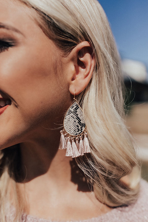 Jewelry has the power to be this one little thing that can make you unique, so accessorize with the "Private Suite" statement earrings with their snake print teardrops and dangling neutral colored tassels!