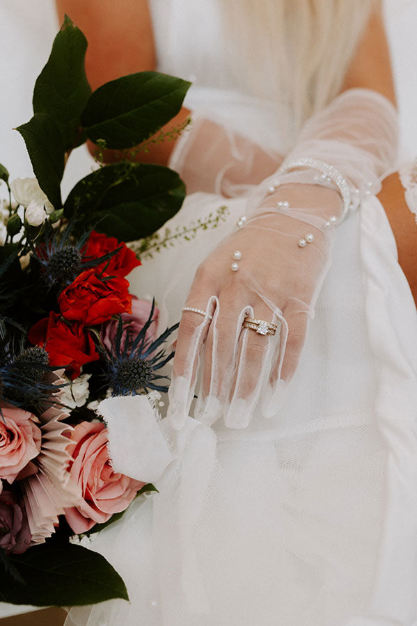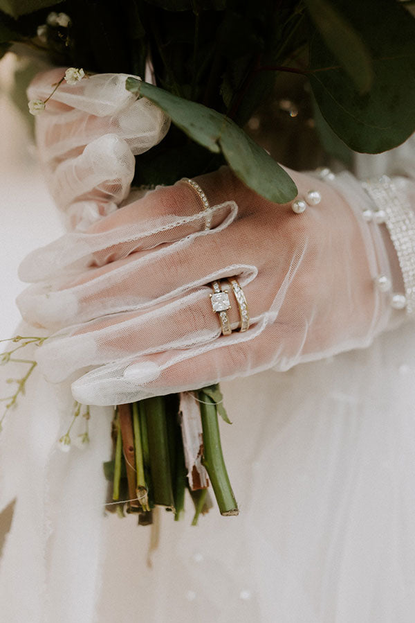 - Channel set engagement ring with zircon accent stones and cushion cut center stone