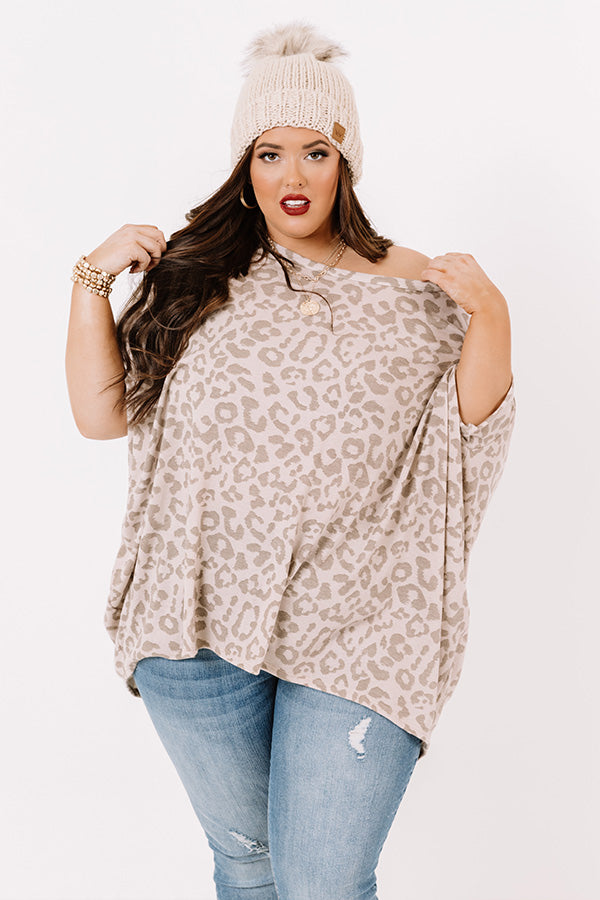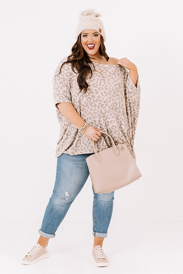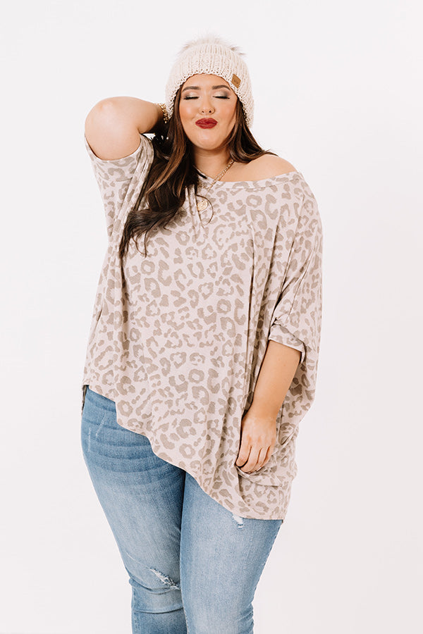Plus Size - You are sure to have a great fashion moment when you wear this adorable neutral hued shift top featuring soft lightweight material patterned with a large leopard print, a wide rounded neckline, loose half bat wing sleeves, and a relaxed silhouette that cascades into a rounded tunic-length hemline!