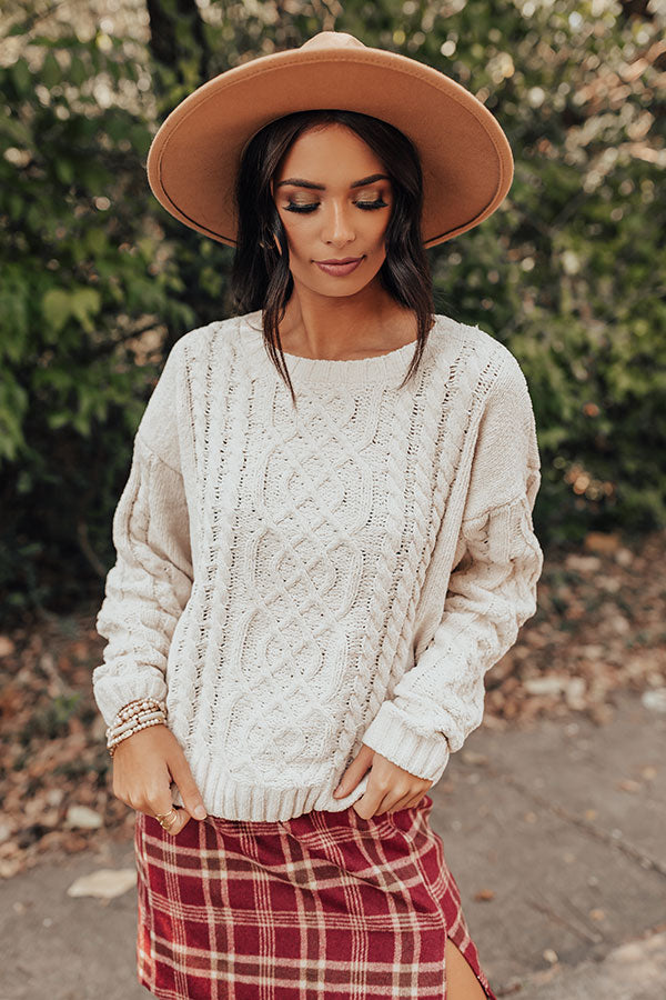 Do you need a little 'PSL Pick Me Up?' This chic cable knit sweater is sure to do the trick. With long loose sleeves and a wide rounded neck and ribbed hem, this is the cozy sweater of your fall dreams. Pair with denim or your favorite plaid skirt and boots for a look you'll love all season long. Measurements