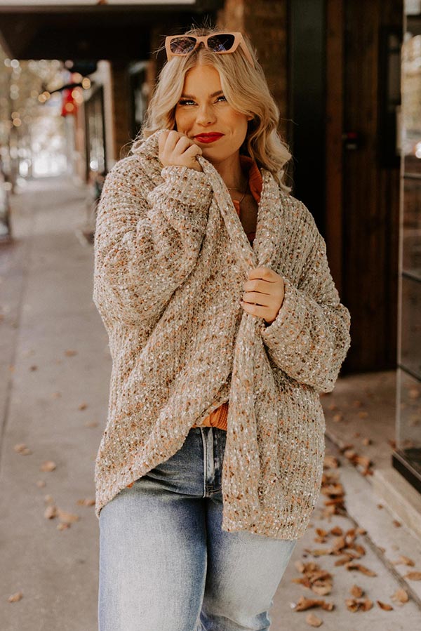 Pumpkin Patch Cozy Knit Cardigan In Warm Taupe Curves