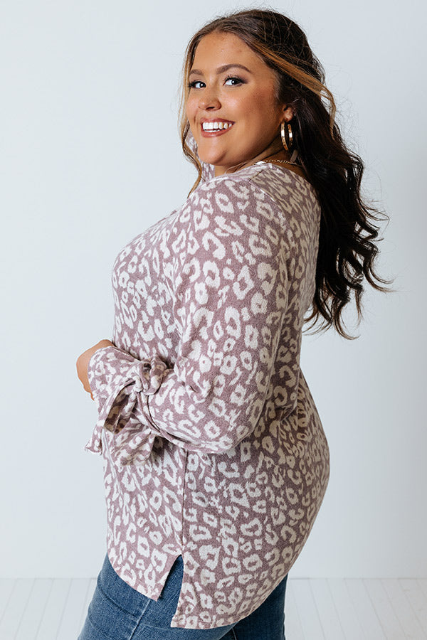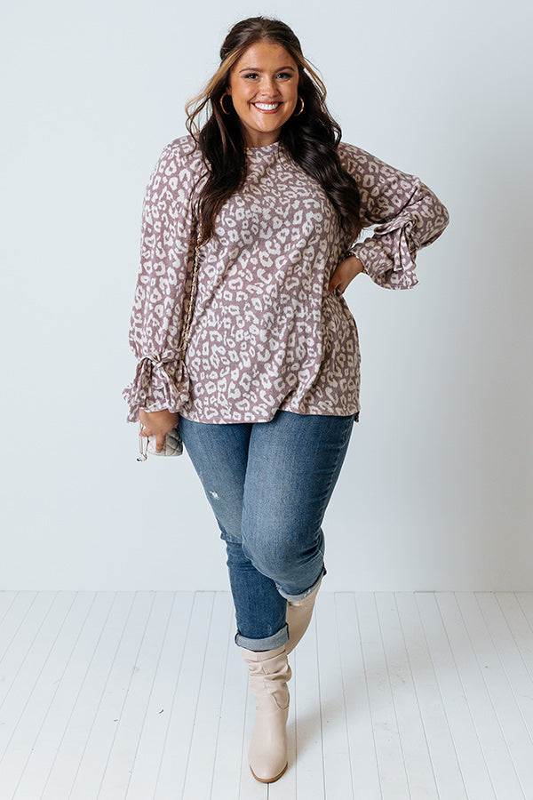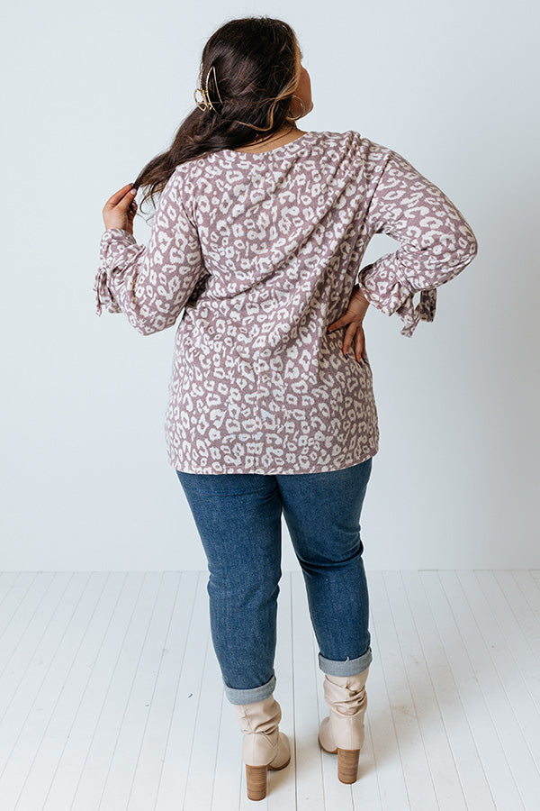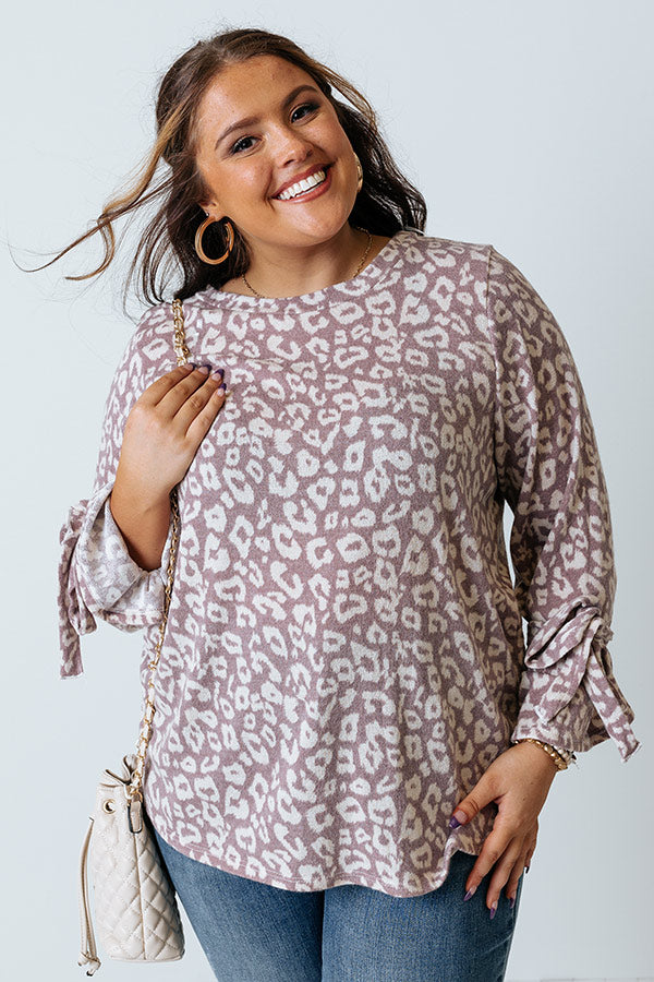 Slay all day in our charming plus size dusty purple colored 'Pumpkin Patch Please Shift Top' featuring soft lightweight and warm material patterned with a white leopard print, a rounded neckline, long loose sleeves with tie closure accents around the cuffs, and a relaxed silhouette that falls into a straight hemline!